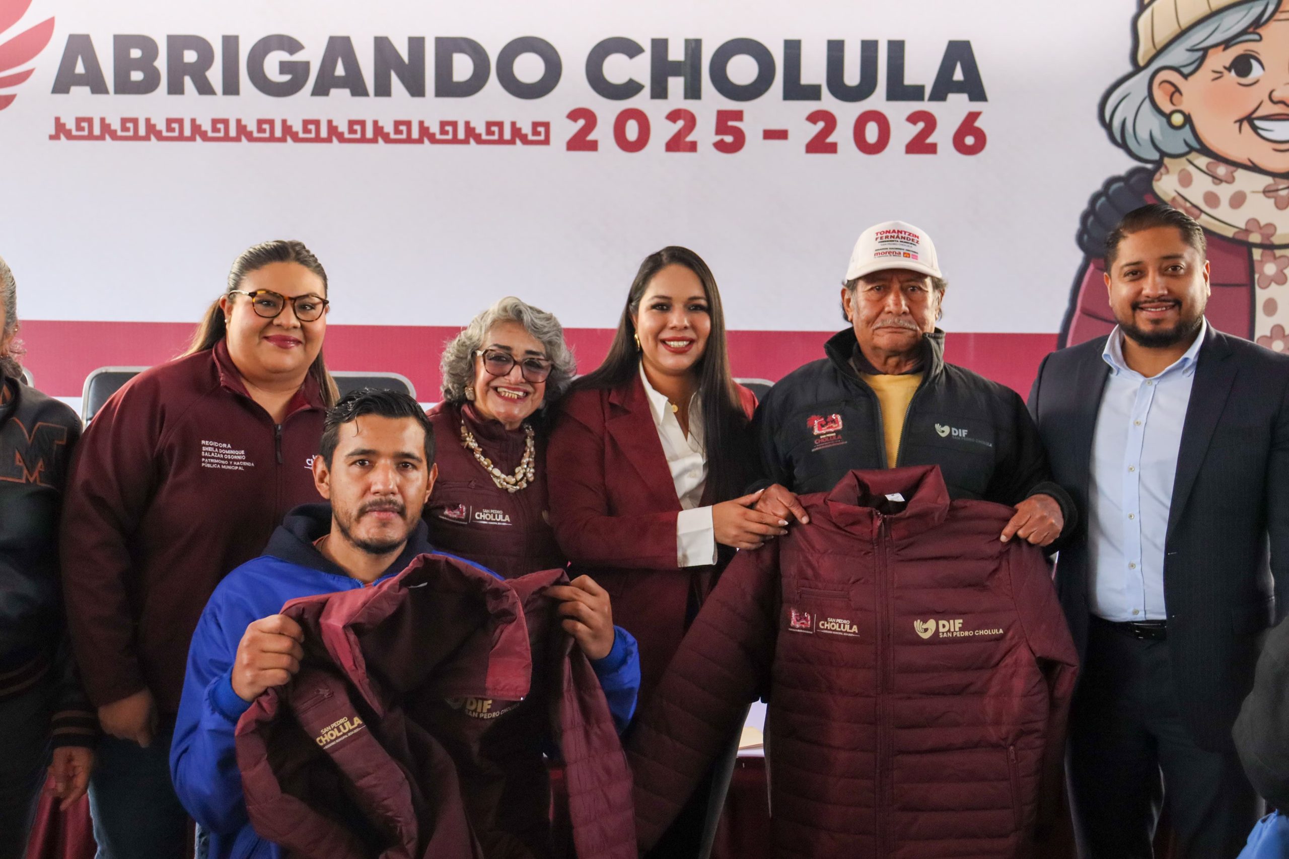 San Pedro Cholula.- Como parte del programa “Abrigando Cholula 2025-2026”, la alcaldesa de San Pedro Cholula, Tonantzin Fernández Díaz, llevó a cabo la entrega de chamarras abrigadoras a personas adultas mayores.