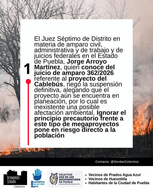 Ayer, recibieron un duro revés debido a que el mismo juzgado determinó que no se podía otorgar la suspensión definitiva debido a que el proyecto del Cablebús se encuentra en proceso de planeación y es inexistente una posible afectación ambiental.