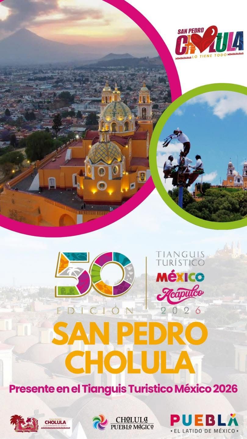San Pedro Cholula.- San Pedro Cholula desea seguir teniendo una gran presencia para que sea uno de los municipios del estado de Puebla más visitado, situación que dejará demostrado en el Tianguis Turístico 2026, tal y como lo ha hecho en la Feria de Puebla.